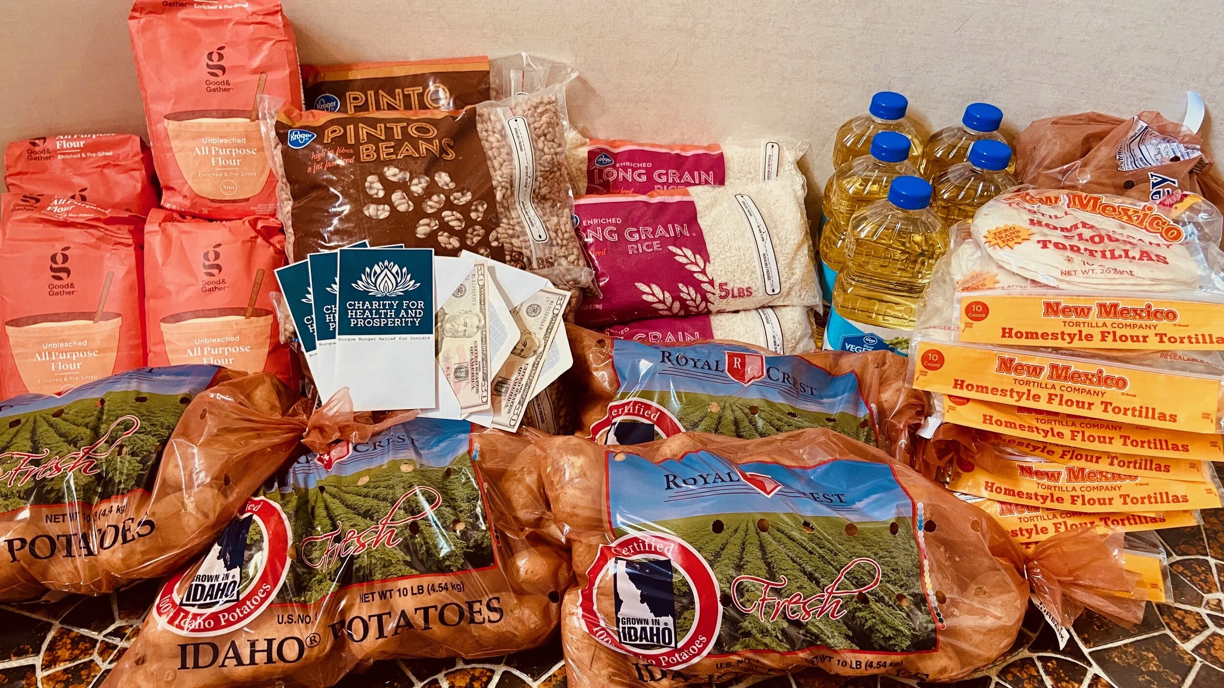 Groceries for five Covid-19 Hunger Relief Packages for five families … If you want to help us monetarily for this Covid-19 Hunger Relief, please donate below at our GoFundMe Campaign link…If you are in need of help during Covid and are NOT receiving any government assistance in NM, please fill out the form below.